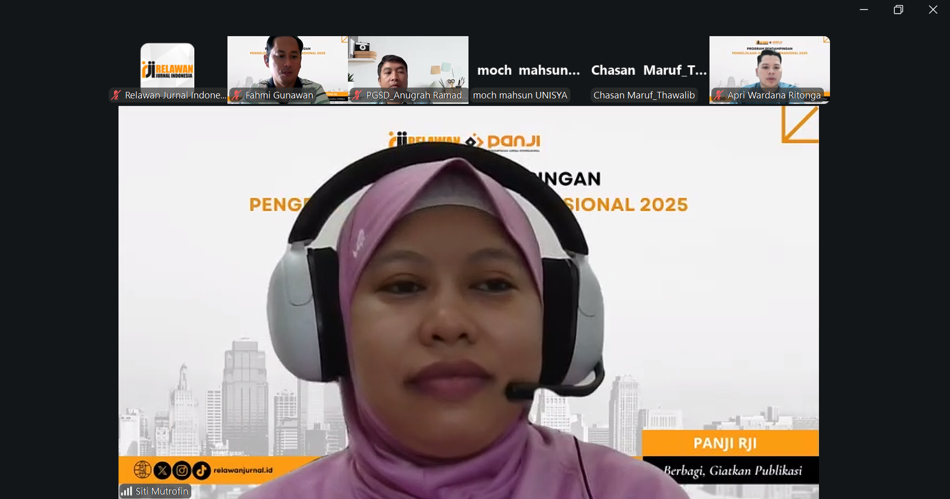 Selasa, 11 Februari 2020, Relawan Jurnal Indonesia (RJI) melaksanakan kegiatan rutin Belajar OJS dengan memanfaatkan aplikasi belajar Zoom. Pada kesempatan kali ini, Arbain, S.Pd., M.Pd selaku moderator membuka acara yang diisi oleh Busro, S.Ud., M.Ag. Selain menggunakan aplikasi zoom, kegiatan belajar bersama ini bisa diikuti langsung melalui akun Youtube milik Relawan Jurnal Indonesia (RJI) dan halaman Facebook.