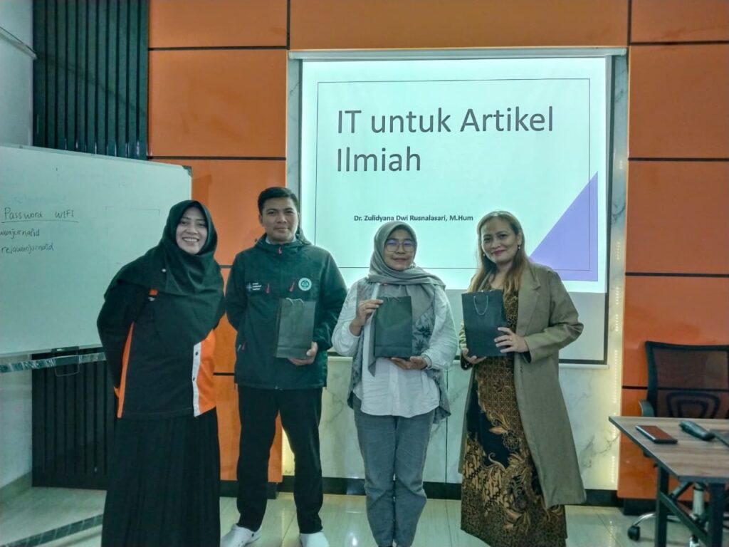 Sesi terakhir dibawakan oleh Zulidyana yang mengangkat tema Penerapan IT untuk Artikel Ilmiah. Zulidyana menekankan bahwa teknologi informasi telah menjadi elemen penting dalam proses penerbitan ilmiah yang tidak hanya mempermudah proses, tetapi juga untuk memperkuat transparansi dan keberlanjutan data penelitian. Salah satu fokus utamanya adalah penerapan sistem identitas digital seperti ORCID dan Crossref. Selanjutnya, Zulidyana juga menyoroti pentingnya Crossref sebagai platform DOI yang memberikan nomor identifikasi permanen untuk artikel ilmiah, memastikan artikel dapat ditemukan secara konsisten meskipun dalam jangka waktu lama. Sebagai penutup kegiatan, Zulidyana kembali menggarisbawahi pentingnya similarity check untuk menjaga integritas akademik dan penggunaan reference manager untuk mempermudah pengelolaan referensi dan mendukung penggunaan platform open-access untuk memperluas jangkauan publikasi ilmiah, meningkatkan visibilitas dan mempercepat proses diseminasi hasil penelitian.