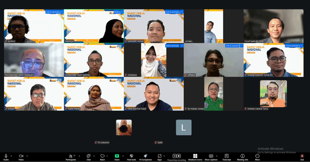Jumat–Sabtu, 30–31 Januari 2026 — Relawan Jurnal Indonesia (RJI) menyelenggarakan Rapat Kerja Nasional (Rakernas) 2026 secara daring melalui Zoom Workplace RJI. Berbeda dengan pelaksanaan rakernas pada tahun-tahun sebelumnya, kegiatan ini dilaksanakan selama dua hari dan dihadiri oleh Dewan Pengawas, Pengurus Pusat, serta para Koordinator Divisi. Rakernas menjadi forum strategis untuk melakukan evaluasi kinerja organisasi sekaligus merumuskan arah dan program kerja RJI ke depan.